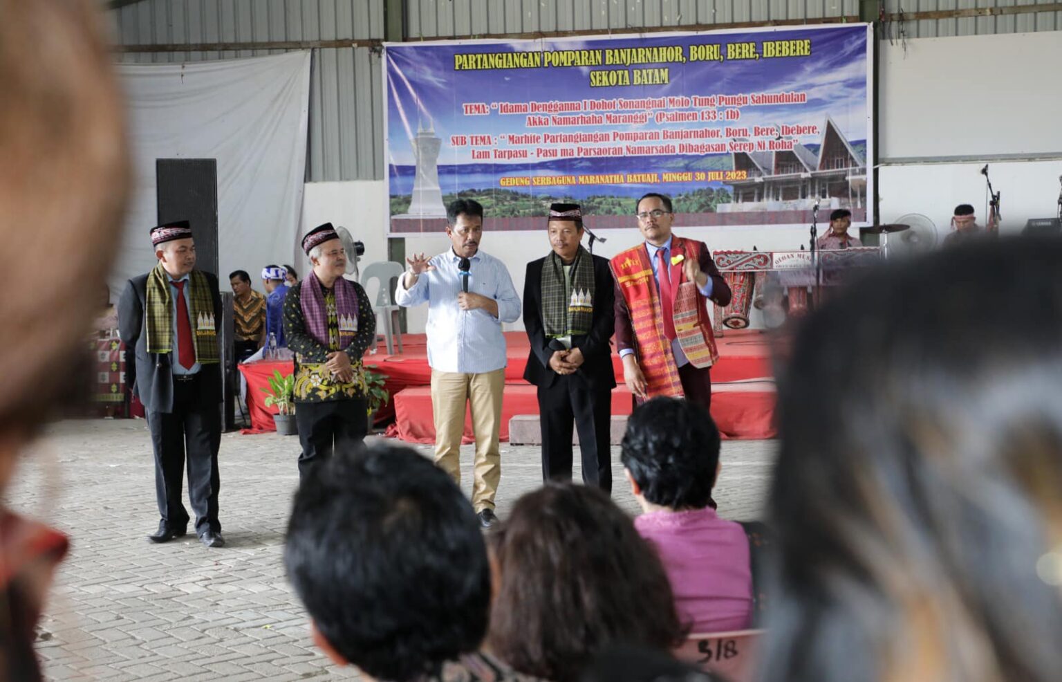 Batam – Wali Kota Batam, Muhammad Rudi menghadiri Acara Partangiangan Raja Banjarnahor Boru, Bere, Ibebere se-Kota Batam, yang digelar di Gedung Serbaguna Sekolah Maranatha Simpang SMK Negeri 1 Batu Aji, Minggu (30/7/2023).