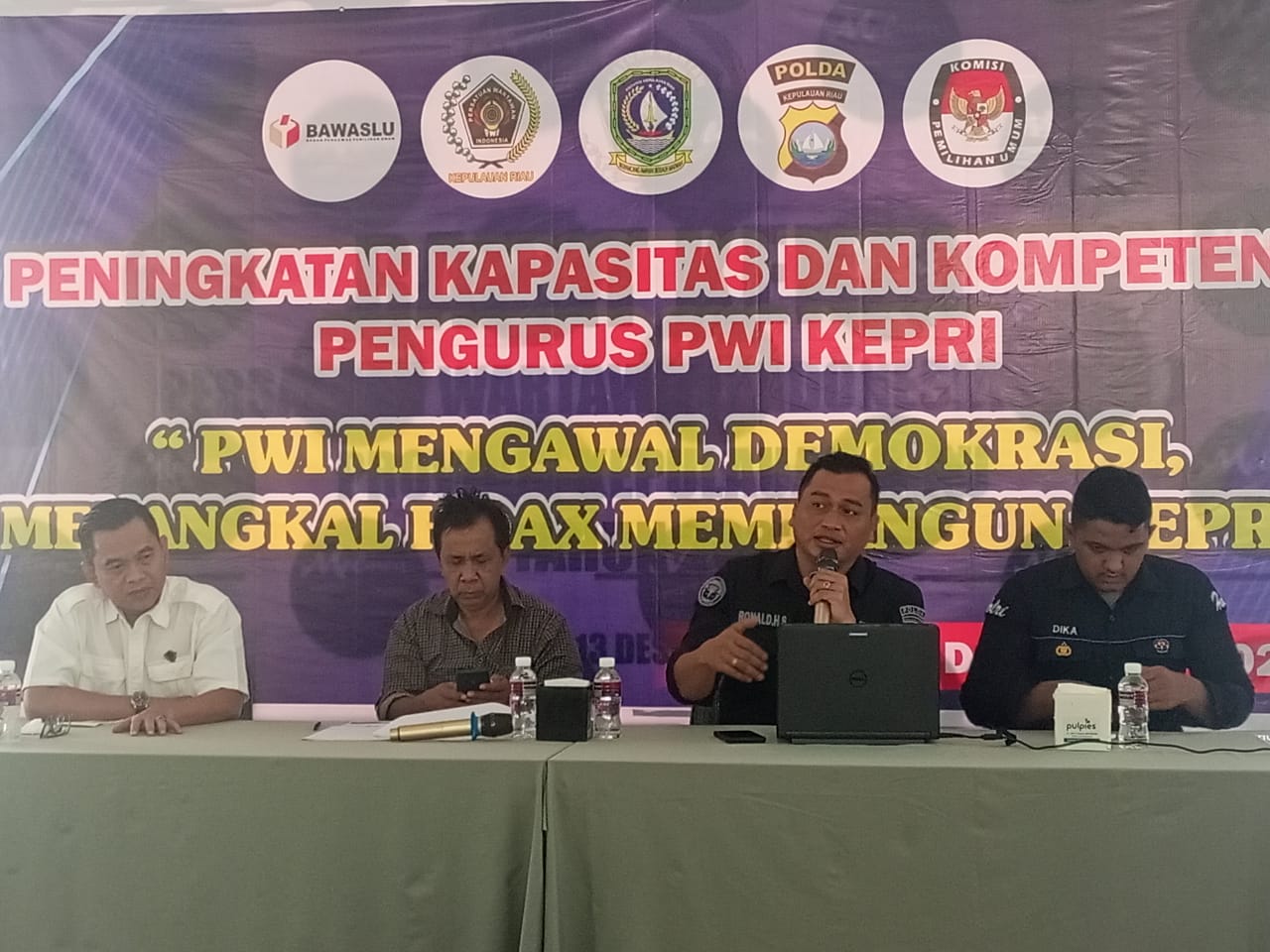 Hal itu disampaikan Kasubbid Multimedia Bidhumas Polda Kepri, IPDA Ronald Simanjuntak pada acara Peningkatan Kapasitas dan Kompetensi Pengurus PWI Kepri yang mengusung tema ‘PWI Mengawal Demokrasi, Menangkal Hoax Membangun Kepri’ di Melawa Cafe, Bengkong, Batam, Kamis (14/12/2023). Tampil juga narasumber, Ketua PWI Kepri, Candra Ibrahim.