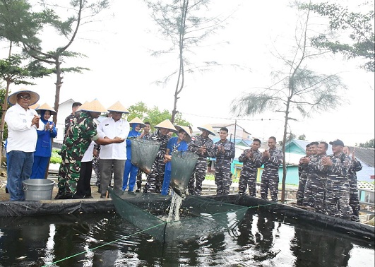 “Ikan nila yang pembibitannya selama 7 bulan di panen hari ini sebanyak 500 kilogram. Kita juga memanen puluhan kilogram sayuran pakcoy dan selada,” terang Danlanal TBK Letkol Laut (P) Anro Casanova.