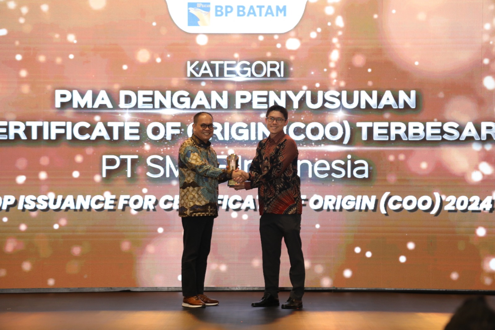 - PMA dengan Penyusunan Certificate of Origin (COO) Terbesar di raih oleh PT SMOE Indonesia