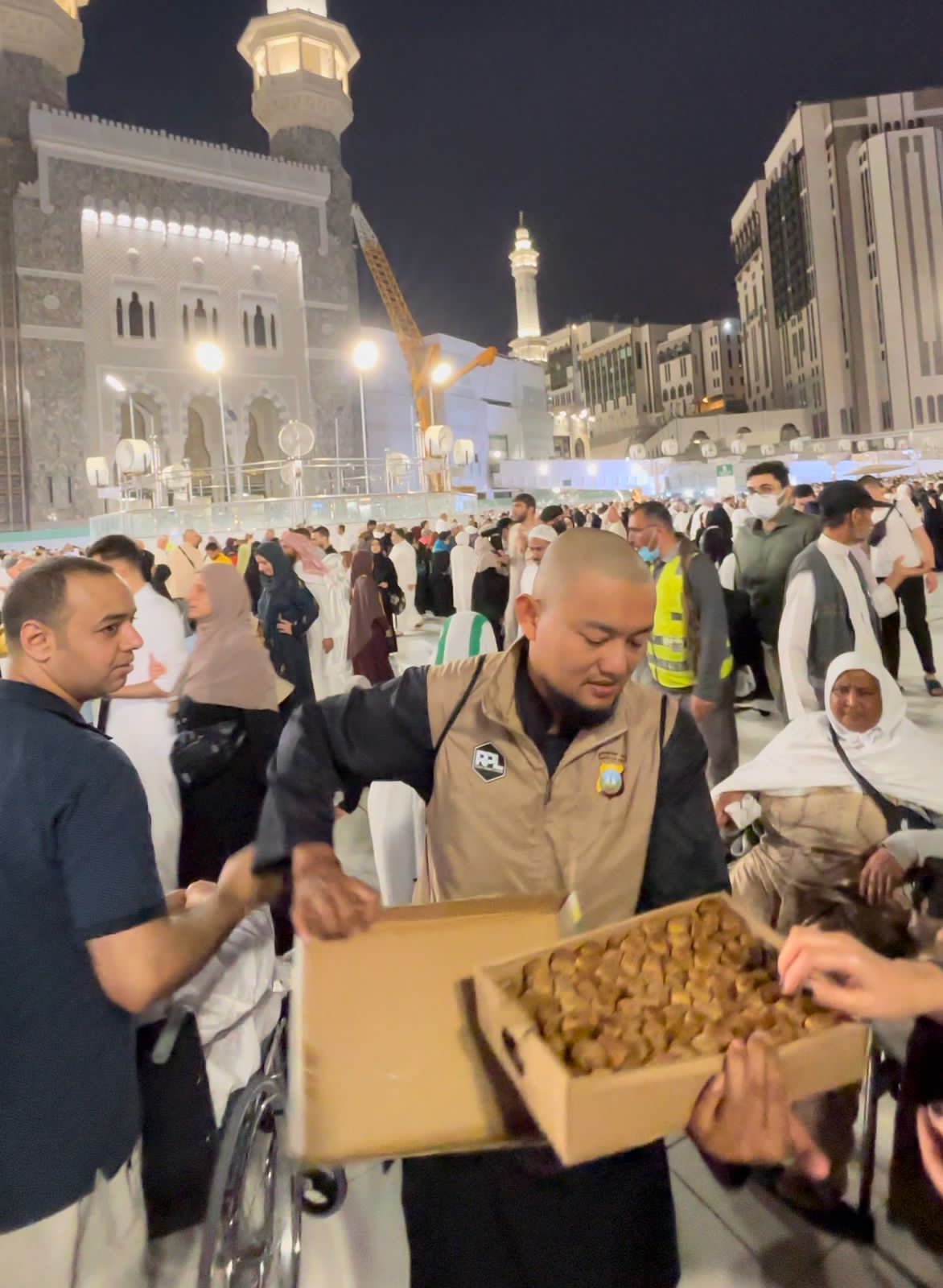 Pria yang viral karena aksi sosial Razia Perut Lapar (RPL) di Kota Tanjungpinang itu, tidak menyia-nyiakan kebiasaan berbaginya meskipun sedang Umrah.