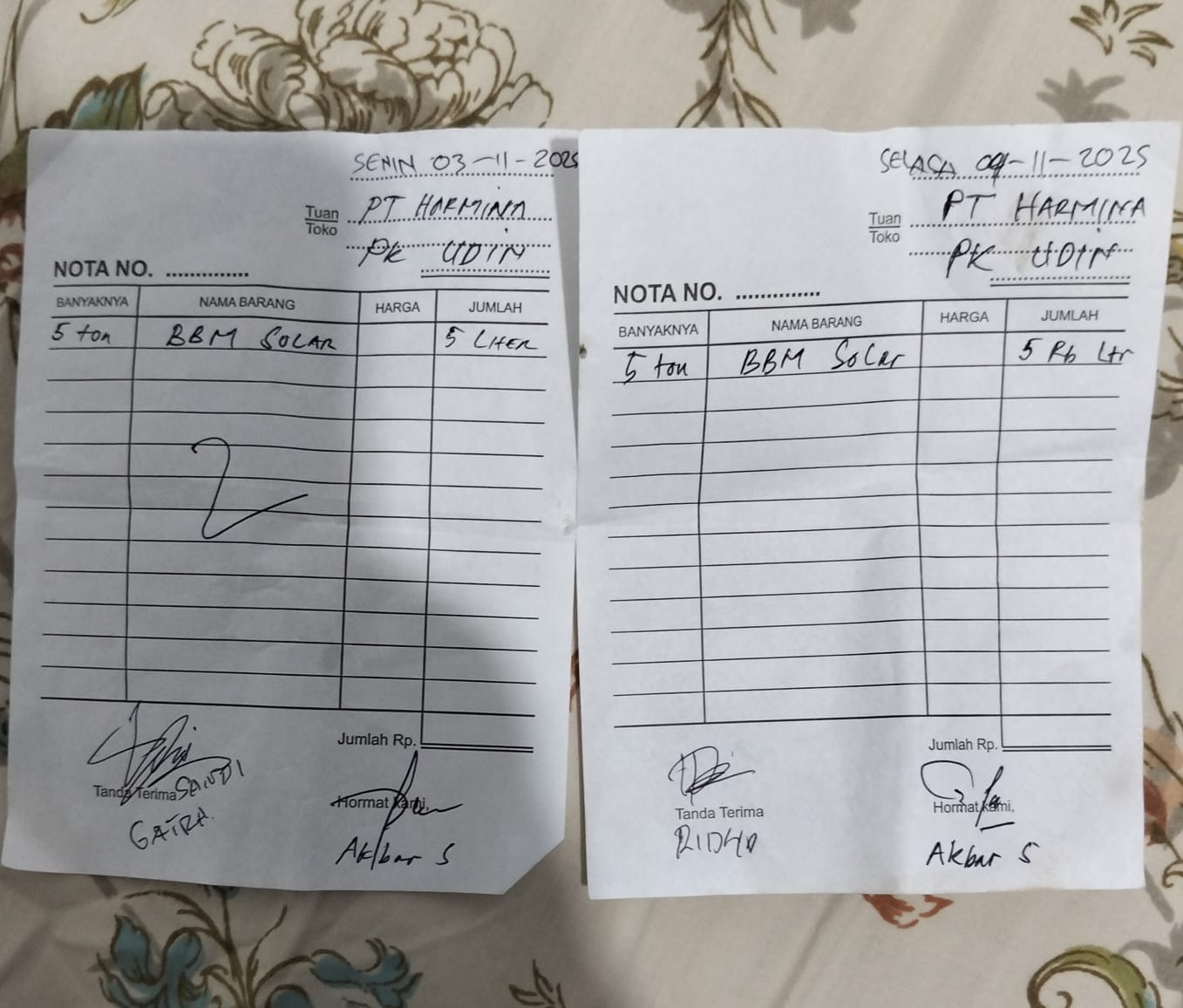 Kepada wartawan RDK group, Rabu (29/4/2026), Udin menjelaskan kronologis total solar yang disuplai mencapai 50 ton dengan nilai keseluruhan sekitar Rp625 juta.